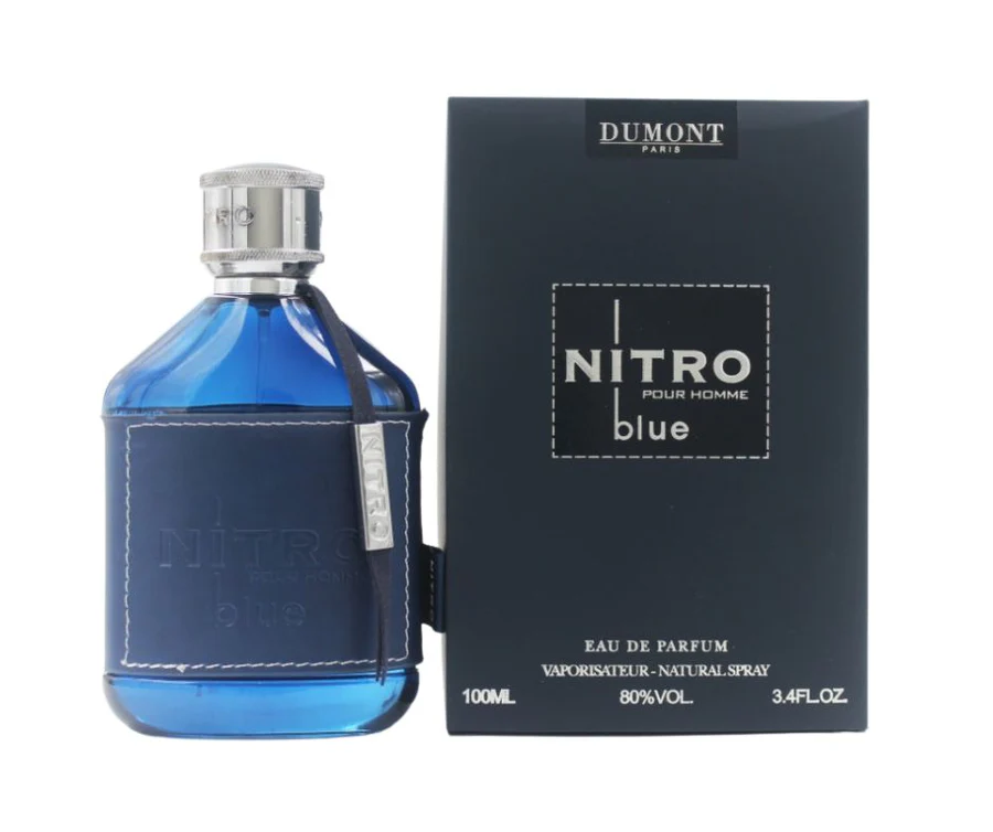 Nitro Blue de Dumont es una fragancia de la familia olfativa Oriental Amaderada para Hombres. Las Notas de Salida son flor de azahar del naranjo, canela, salvia, limón (lima ácida) y albahaca; las Notas de Corazón son praliné, bálsamo de Tolú, notas amaderadas y cardamomo negro; las Notas de Fondo son notas dulces, pachulí, ámbar negro y palo de rosa de Brasil.