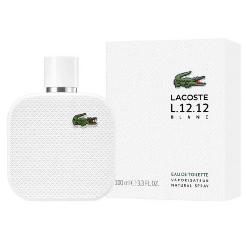 Eau de Lacoste L.12.12. Blanc, Las Notas de Salida son pomelo, romero y cardamomo; las Notas de Corazón son ylang-ylang y nardos; las Notas de Fondo son gamuza, cedro de Virginia, vetiver y cuero.