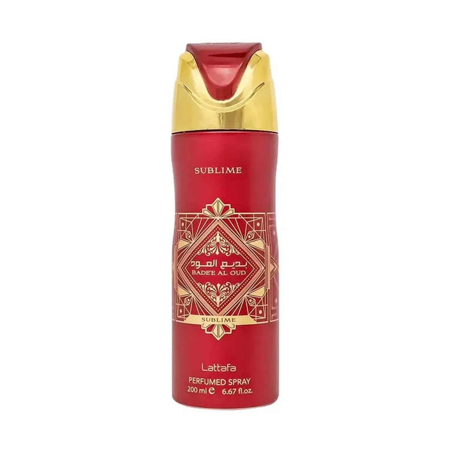 Desodorante Bade’e Al Oud Sublime de Lattafa Perfumes, es una fragancia de la familia olfativa Amaderada Aromática para Hombres y Mujeres. Las Notas de Salida son manzana, lichi y rosa; las Notas de Corazón son ciruela y jazmín; las Notas de Fondo son vainilla, musgo y pachulí. Este desodorante en spray es ideal para que la fragancia dure por mucho más tiempo.