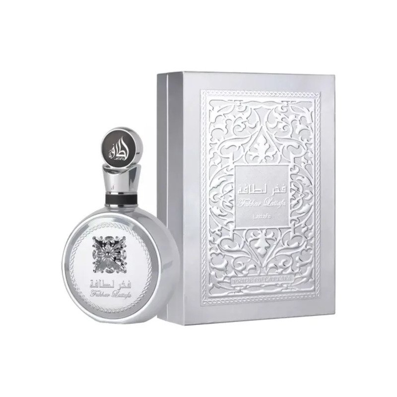 Fakhar Platin de Lattafa Perfumes es una fragancia de la familia olfativa Aromática Fougère para Hombres y Mujeres. Esta fragrancia es nueva. Fakhar Platin se lanzó en 2025. Las Notas de Salida son bergamota, pimienta rosa y cardamomo; las Notas de Corazón son guayaba, lavanda y jengibre; las Notas de Fondo son incienso, palo santo y sándalo.